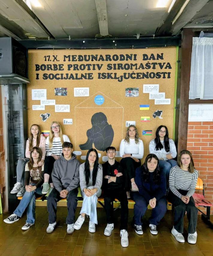 Učenici 4. razreda ekonomske struke: Ema Bandalo, Tena Boljkovac, Leona Fodor, Ingrid Gliša, Leona Kuzminski, Andrej Marunica, Anita Purić, Domagoj Sabljak, Ana Šarić i Lea Zvečić uz mentorstvo Tanje Horvat, prof., obilježili su Međunarodni dan borbe protiv siromaštva i socijalne isključenosti.