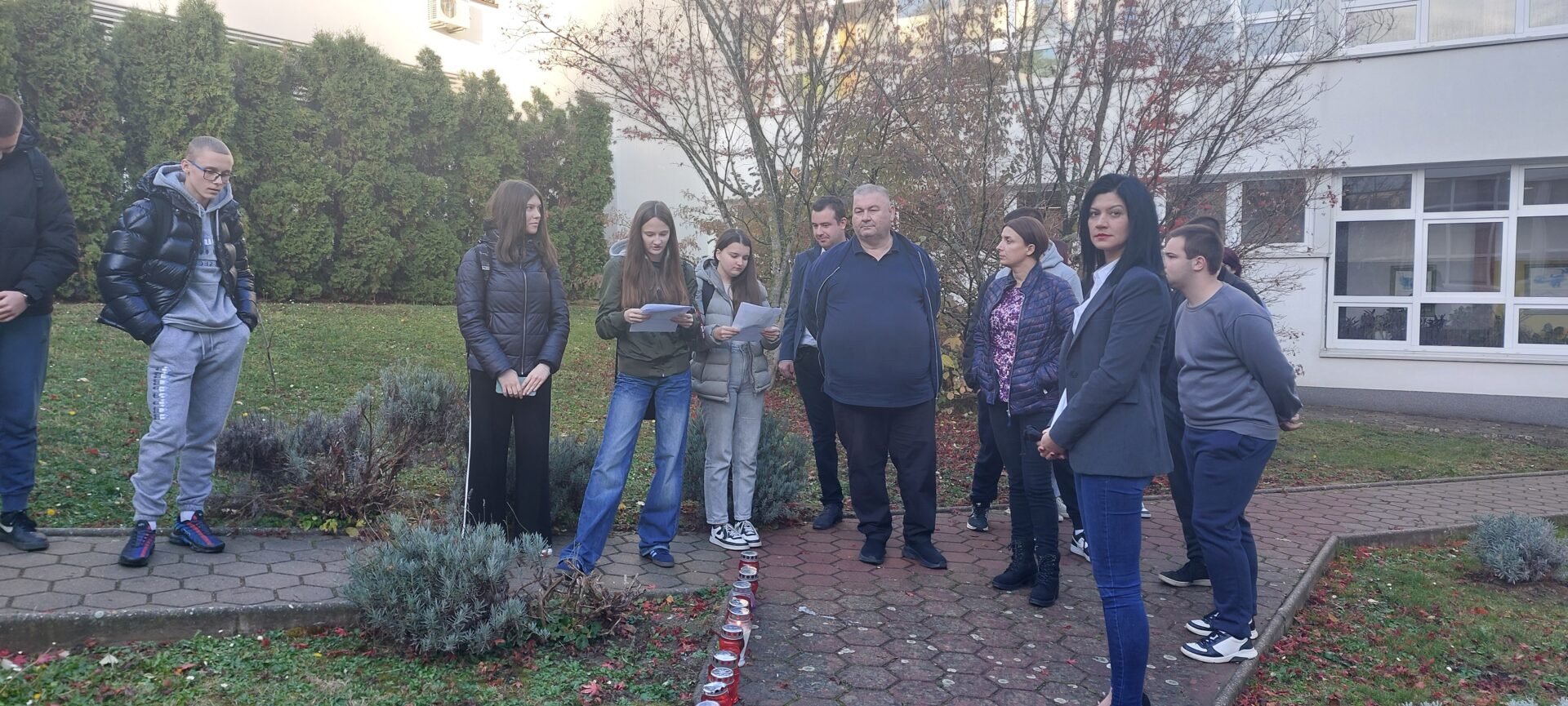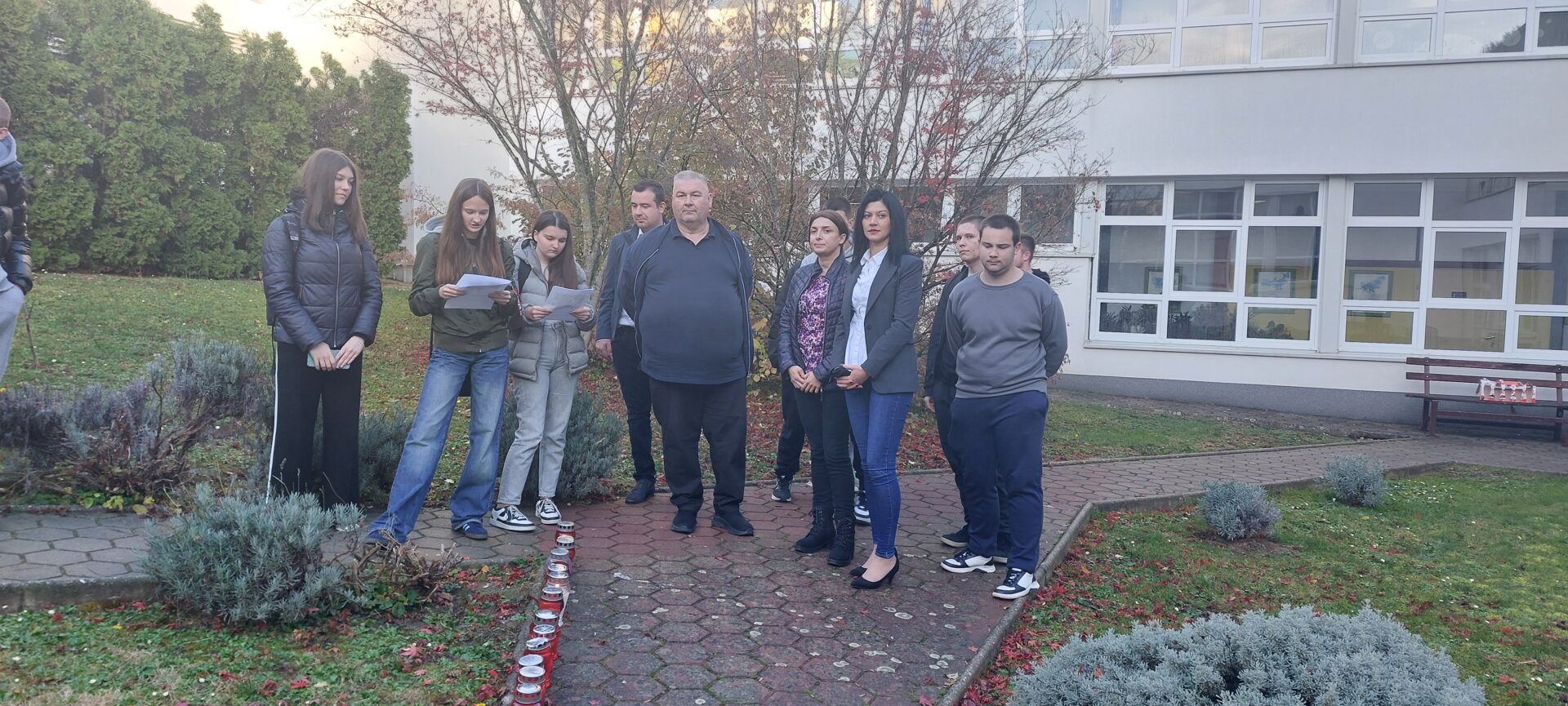 Učenici, profesori i ostali zaposlenici naše škole uključili su se u obilježavanje prigodnim programom u atriju škole te ujedno podržali i inicijativu spomen-čina I u mom gradu Vukovar svijetli.