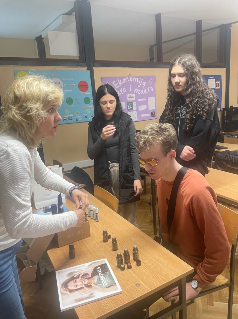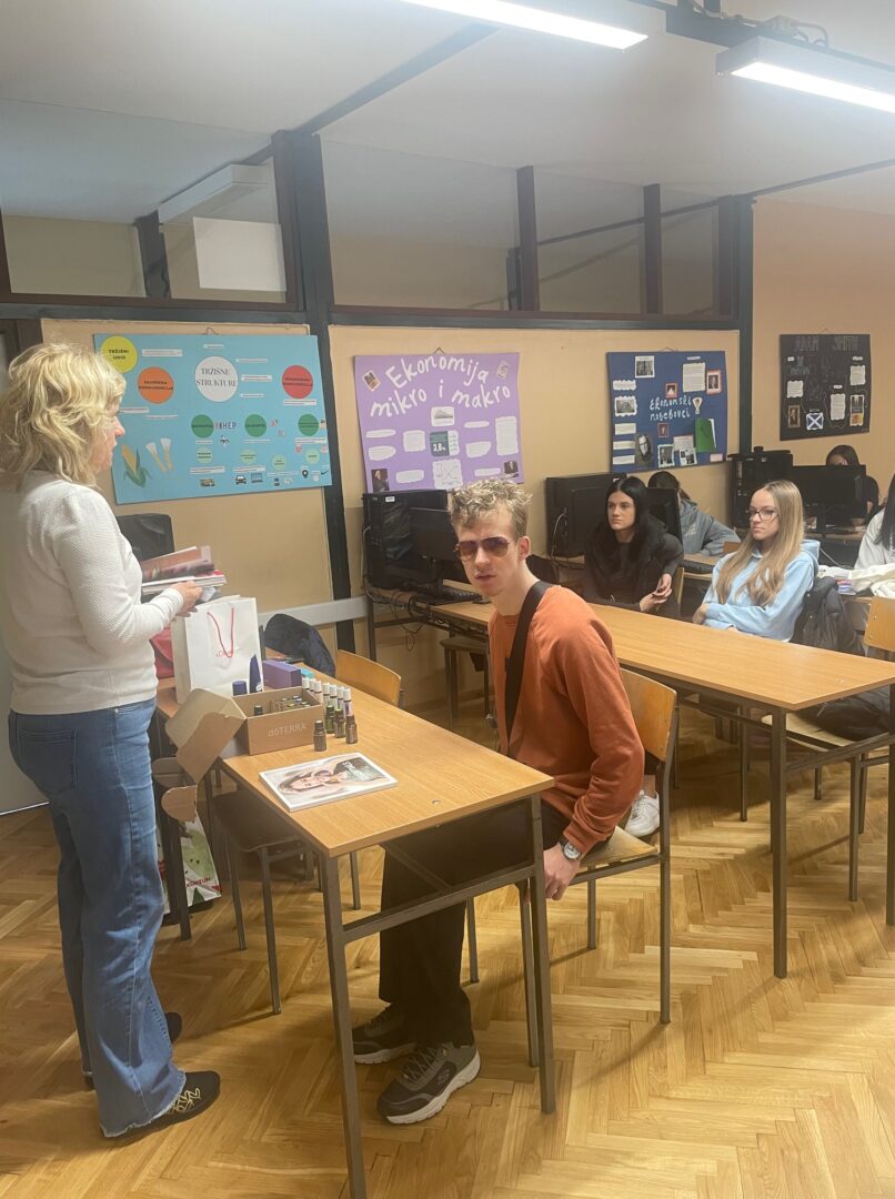 U sklopu izbornog nastavnog predmeta Upravljanje prodajom, učenicima 3. ek u ponedjeljak 17.11.2025. kao gost predavač predstavila se Tatjana Bela, prodajna predstavnica tvrtki Avon i Doterra. Učenicima je obrazložila način poslovanja tvrtki Avon (kataloška prodaja kozmetičkih proizvoda) te Dottera koja se bavi proizvodnjom i prodajom eteričnih ulja i ostalih prirodnih proizvoda s blagotvornim učinkom na zdravlje. Nastavna jedinica koja se obrađivala bila je uspješno prezentiranje proizvoda u maloprodaji.