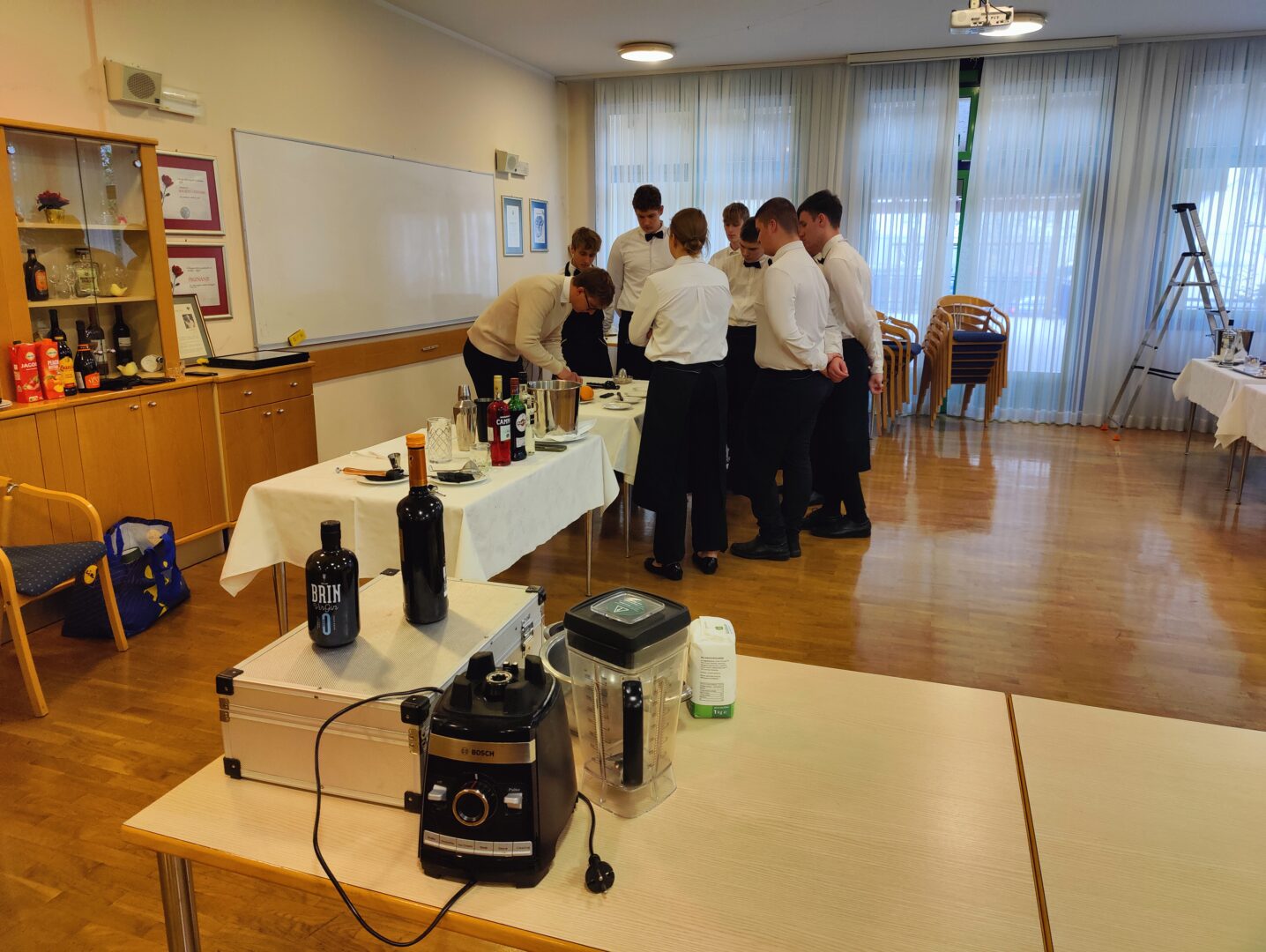 Također je tijekom svog boravka učenicima i nastavnicima škole domaćina predstavio slavonske vinarije i njihova vina, odradio nekoliko radionica s učenicima na temu postavljanja stola i pripremanja kratkih barskih mješavina.