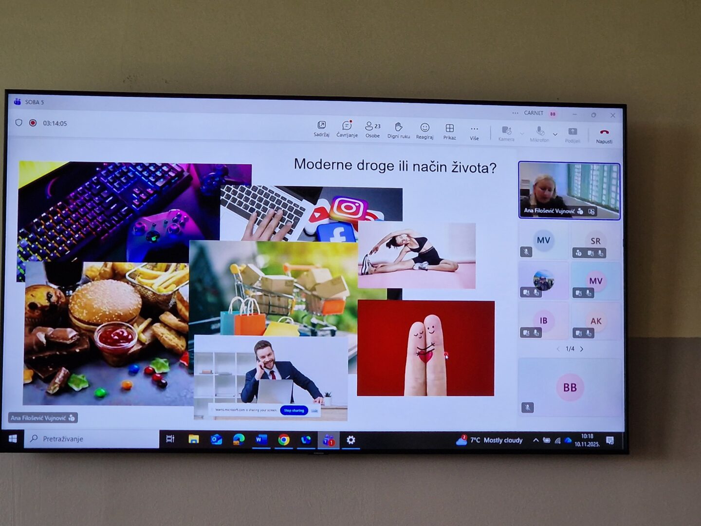 Na ovom predavanju učenici su saznali kako se vinske mušice (Drosophila melanogaster) koriste kao model organizmi u istraživanju mehanizama ovisnosti, što otvara vrata razumijevanju složenih procesa u ljudskom mozgu. Predavanje je bilo iznimno zanimljivo i poticajno, a učenici su pokazali velik interes za temu te i sami imali priliku postaviti pitanja tijekom predavanja.