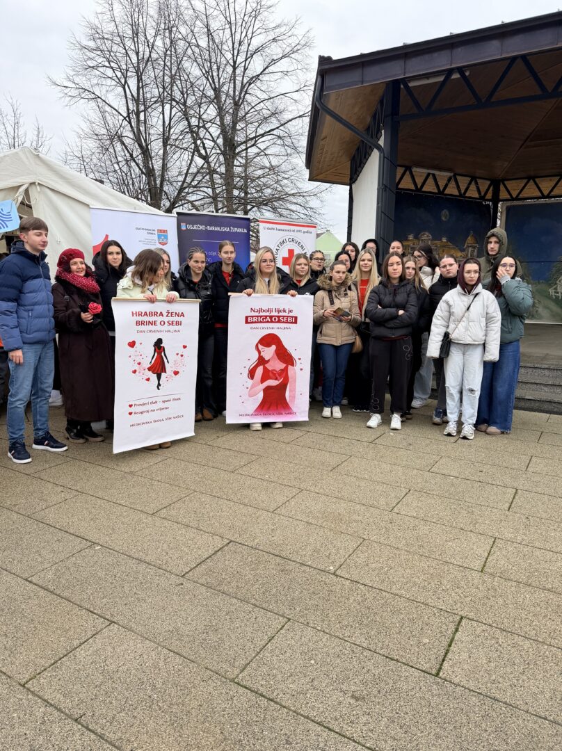 U utorak, 3. veljače 2026. na Trgu dr. Franje Tuđmana u sklopu projekta „Žene u crvenom“ održala se javno zdravstvena akcija povodom Dana crvenih haljina – nacionalnog dana borbe protiv moždanog udara u žena. Projekt je organizirala Osječko-baranjska županija.
